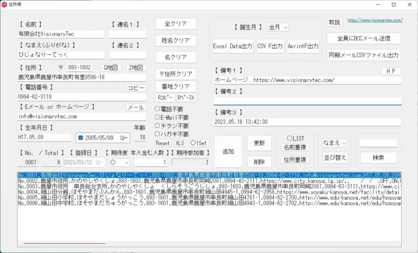 住所録ソフトウェア